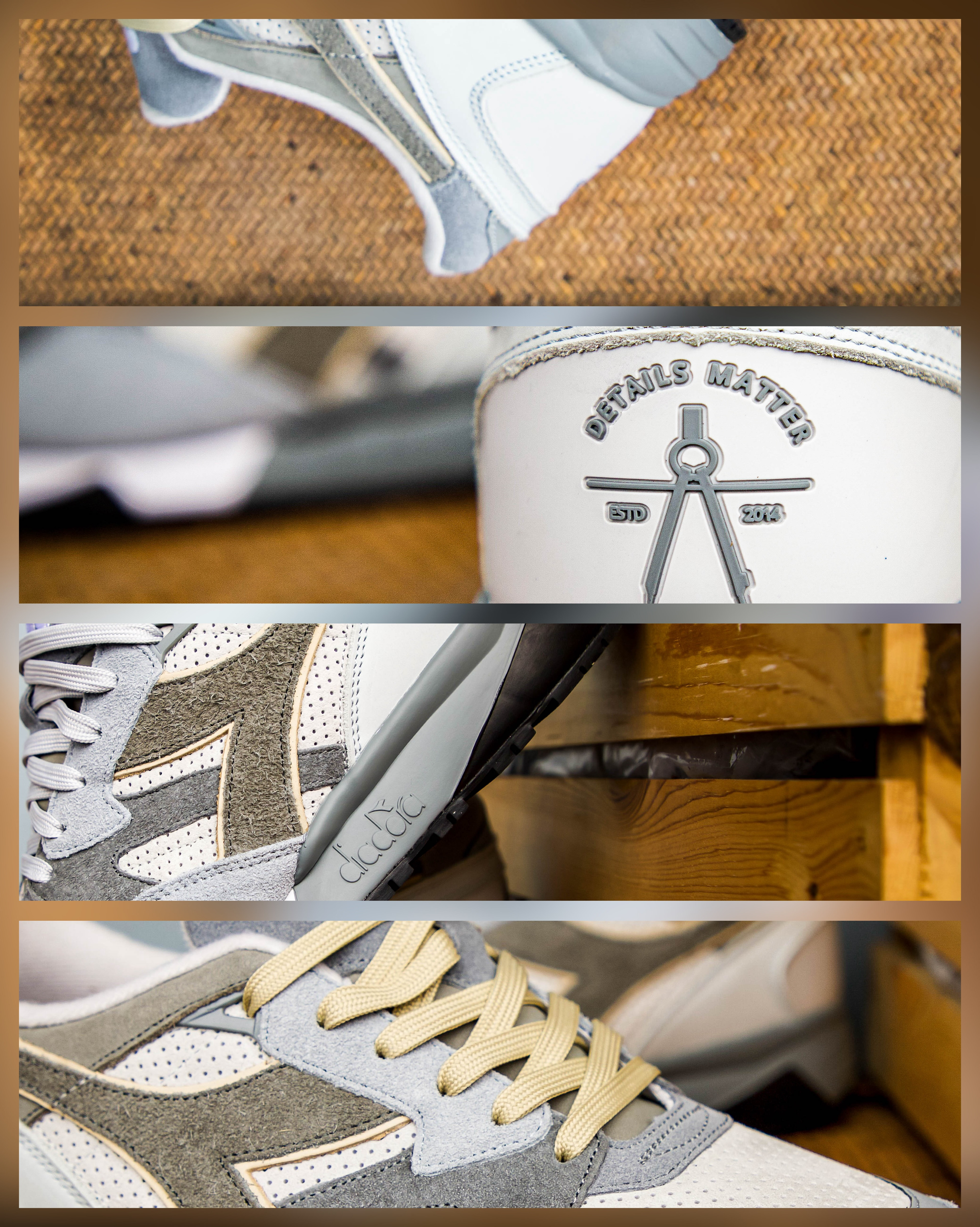 The Details Matter x Diadora N9002 “The Traveler” captures the essence of Puerto Rico with a tan outline on the Diadora logo representing the sand from the beaches. The nubuck material references the mountainous terrain and regions like El Yunque, the island’s rainforest. The shoe’s various tones of grey decorating the shoe are a nod to the historic cobblestone streets in Old San Juan. On the insole are map coordinates of Puerto Rico for “The Traveler” to find their destination.
